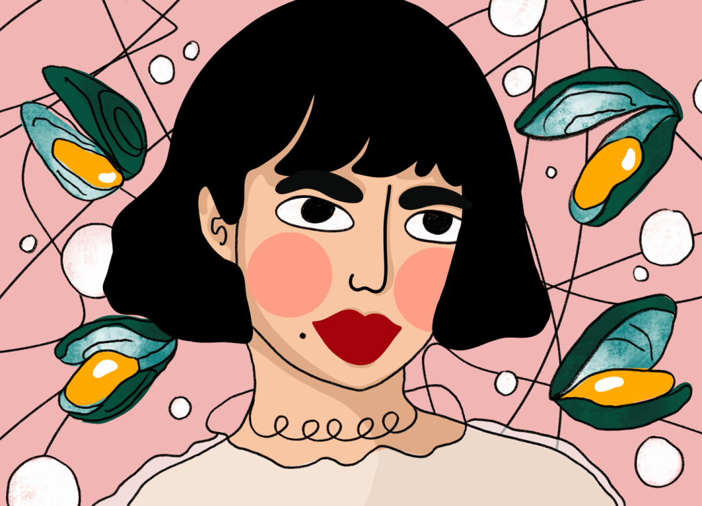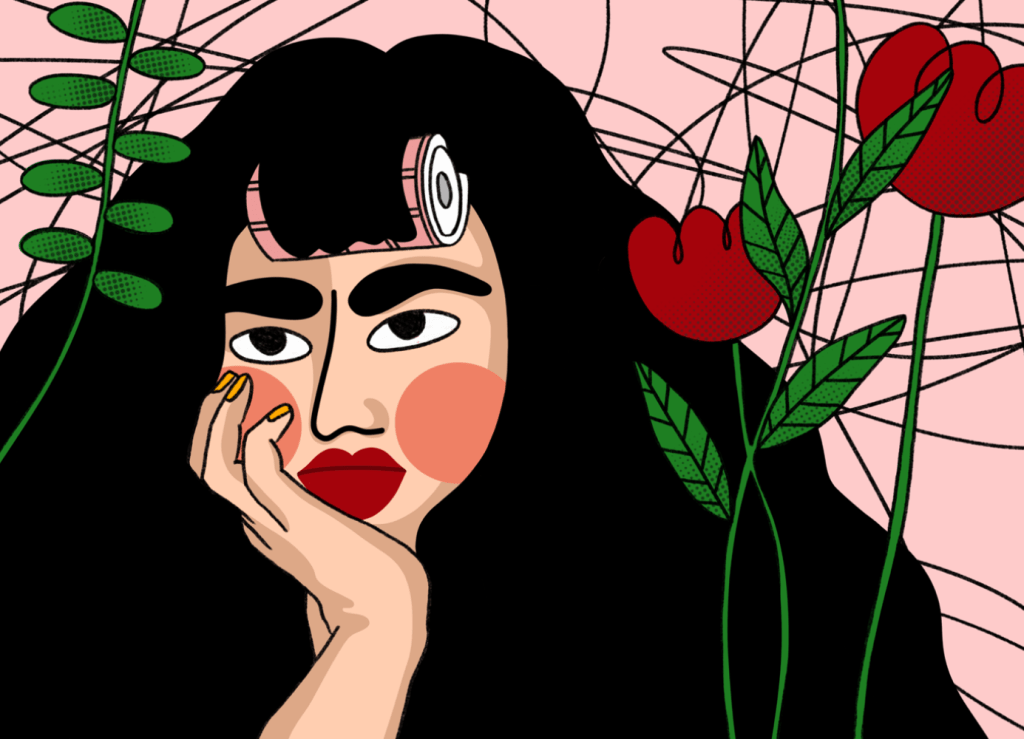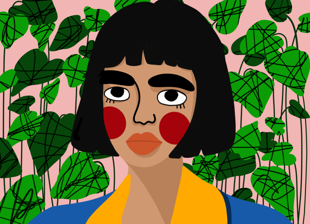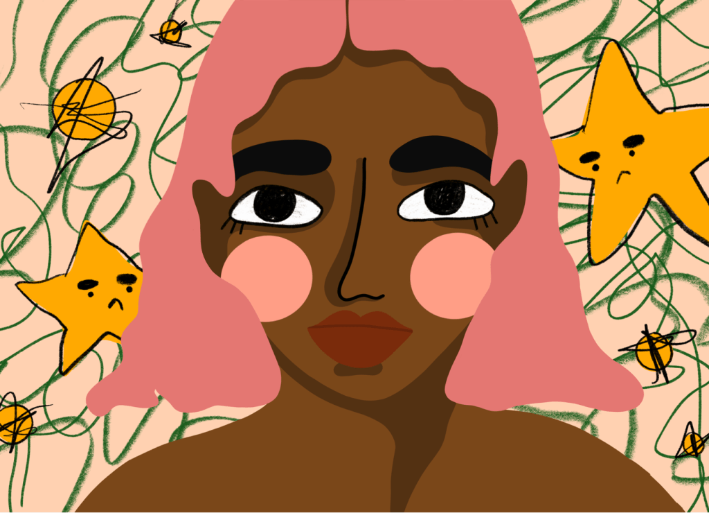Portrait series done in a style of bold colors, exaggerated facial features, and unconfined scribbles.